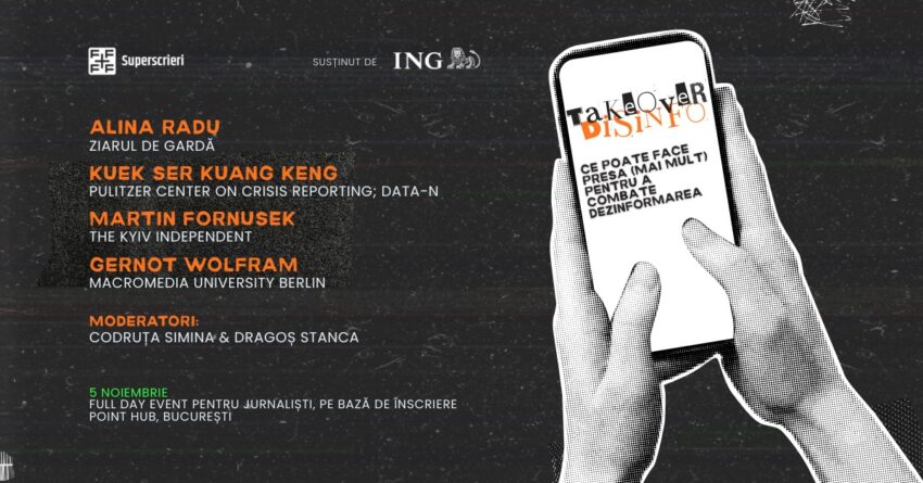 Fundația Friends For Friends, organizator al Galei Premiilor Superscrieri, inițiativă care premiază anual cel mai bun jurnalism din România, și ING Bank România, organizează pe 5 noiembrie evenimentul Takeover Disinfo, dedicat jurnaliștilor interesați de înțelegerea și combaterea fenomenului dezinformării.